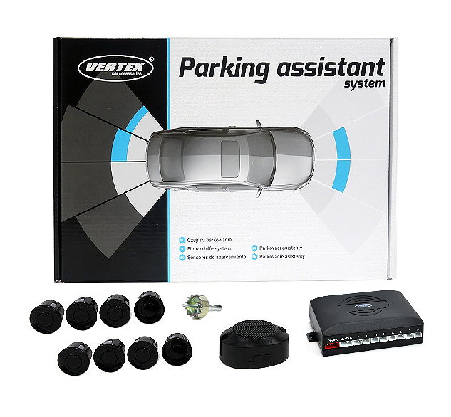 Das Vertex Parksystem mit 8 Sensoren wird beim Einlegen des Rückwärtsganges aktiviert und der integrierte Lautsprecher signalisiert mit einem akustischen Signal die Entfernung zum Hindernis. Je näher Sie darauf zukommen, desto häufiger hören Sie die akustische Warnung.