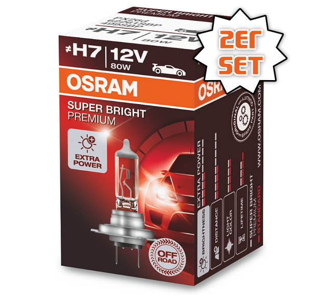Mit der neuen OSRAM SUPER BRIGHT PREMIUM H7 Halogenlampe erhalten Sie das perfekte Licht abseits der Straße. Bei einem starken und kontrastreichen Licht sorgt die Halogen-Scheinwerferlampe für einen optimal beleuchteten Offroad-Einsatz. Hochwertige Lichttechnologie mit vibrationsfester Technik sorgen für verbesserte Sichtverhältnisse in schwierigem Gelände. Ausgestattet mit modernster Lichttechnologie bietet die SUPER BRIGHT PREMIUM H7 Halogen Lampe die Extra Plus Power im Offroad-Bereich.